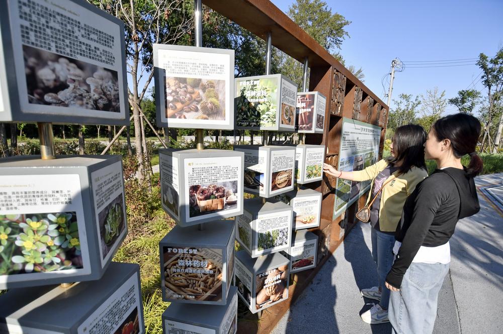 [신화망 베이징 9월26일]24일 시민들이 베이징시 순이(順義)구의 한 포켓 공원에 마련된 중약재 과학보급 전시물을 살펴보고 있다.