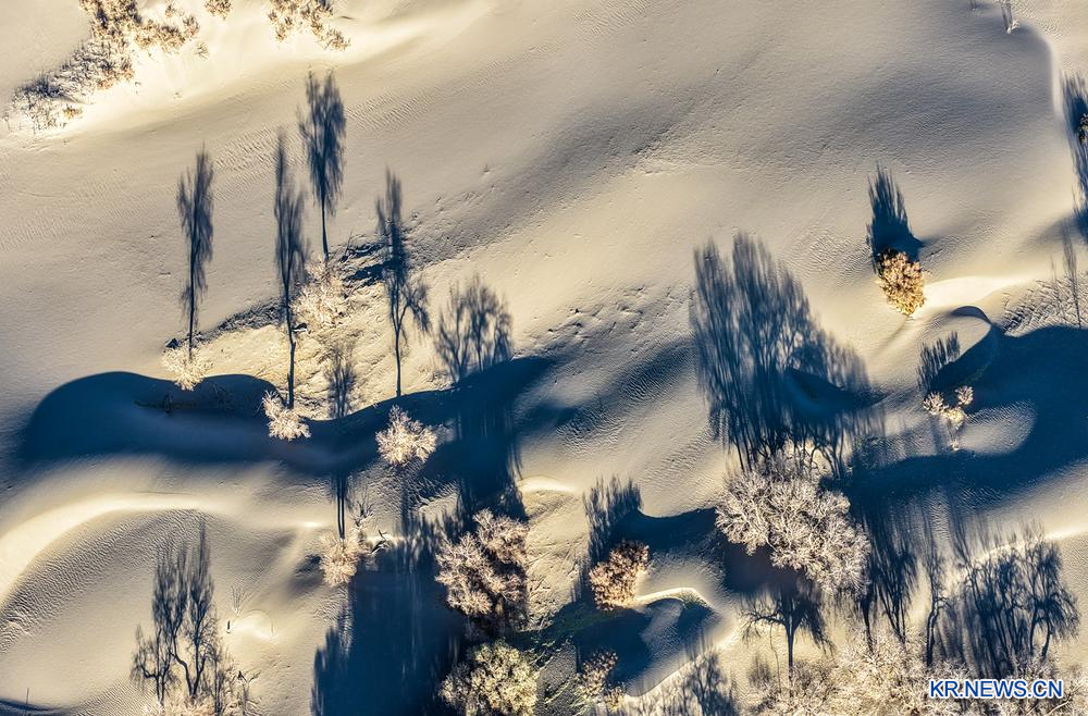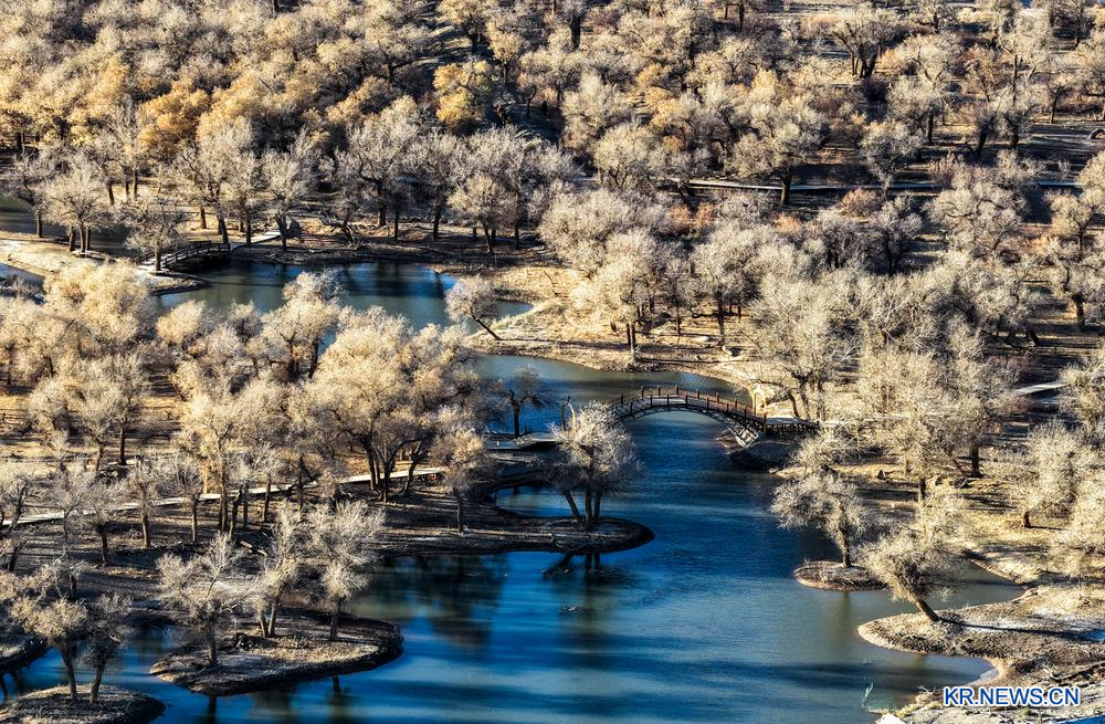 [신화망 어지나기 11월1일] 30일 네이멍구(內蒙古)자치구 아라산(阿拉善)맹 어지나(額濟納)기의 포플러숲을 드론에 담았다.