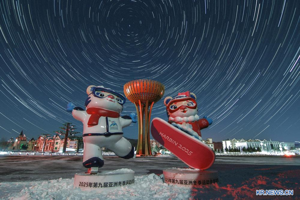 7일 스태킹 기법으로 연출한 야부리 스키관광리조트의 "제9회 동계 아시안게임" 마스코트. 2026.2.8