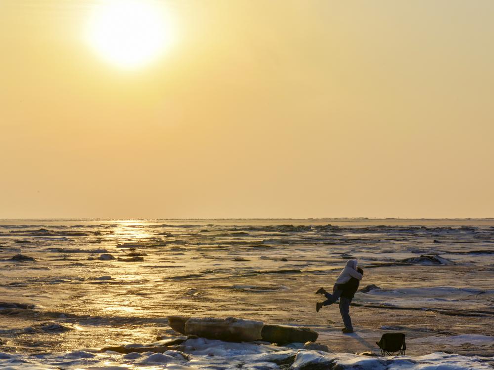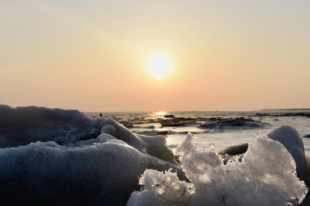 [신화망 잉커우 2월11일] 랴오닝(遼寧)성 잉커우(營口)시 시파오타이(西砲台) 공원 인근 보하이(渤海) 해역이 얼어붙어 장관을 이루고 있다. 많은 시민과 관광객들은 겨울에만 만날 수 있는 이색적인 석양 풍경을 사진에 담으며 특별한 낭만을 즐기고 있다.