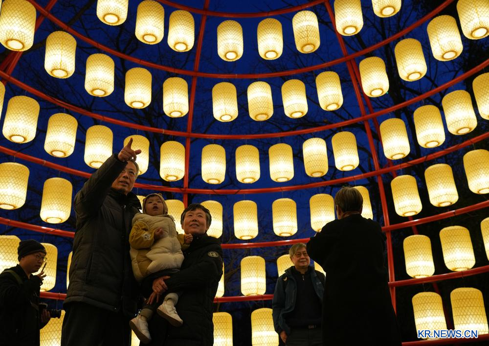 11일 시시(西溪)습지에 전시된 꽃등을 구경하는 관광객.