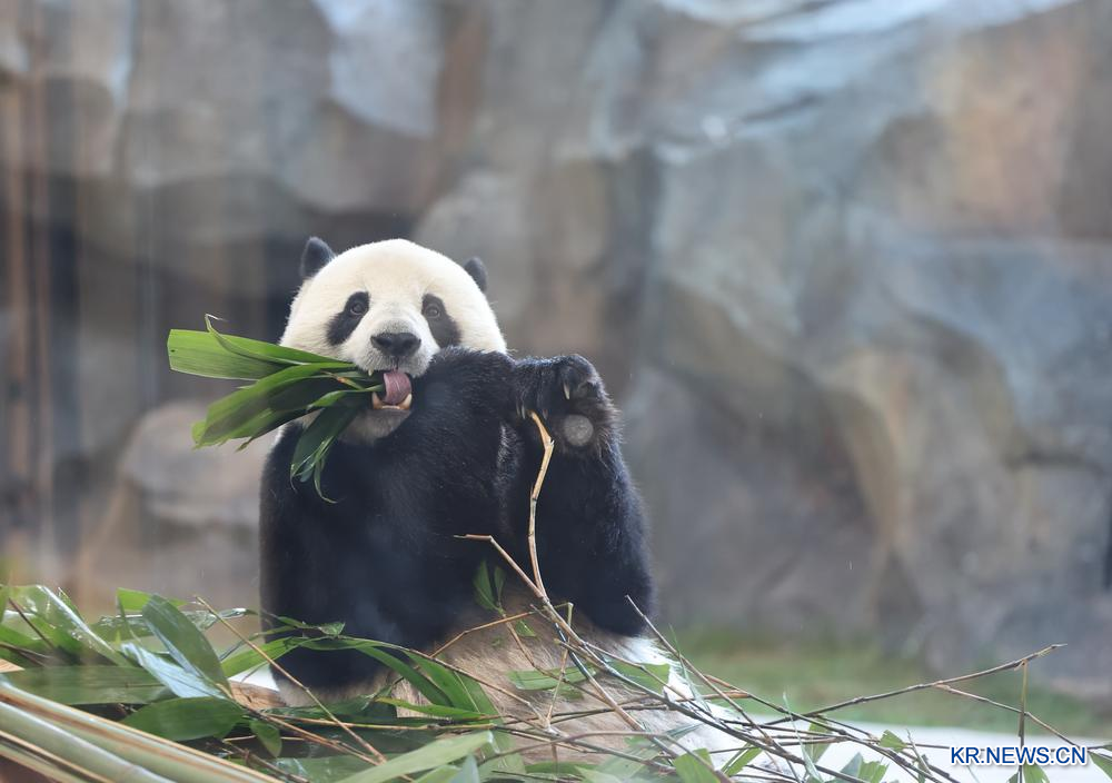 이날 자이언트판다 더루이가 신선한 대나무를 먹고 있다. 2026.2.19