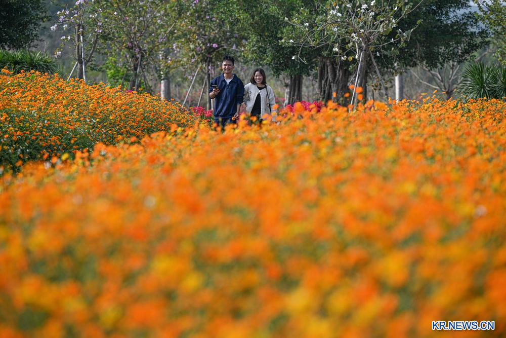 [신화망 중국 창장 2월22일] 하이난(海南)성 창장(昌江) 리(黎)족자치현에 위치한 쥐위안(聚源)화훼박람원에서 코스모스, 부겐빌리아 등이 앞다투어 피어남에 따라 관광객 발걸음이 줄을 잇고 있다.