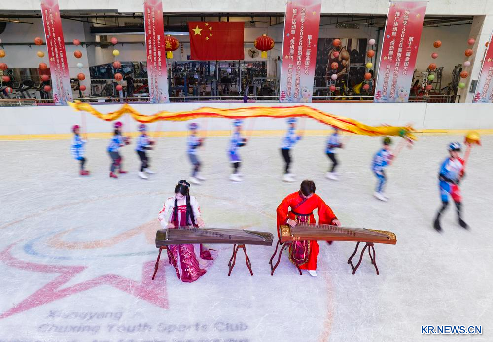 22일 후베이(湖北)성 샹양(襄陽)시에서 열린 한 빙설 스포츠 홍보 활동 현장. 2026.2.22