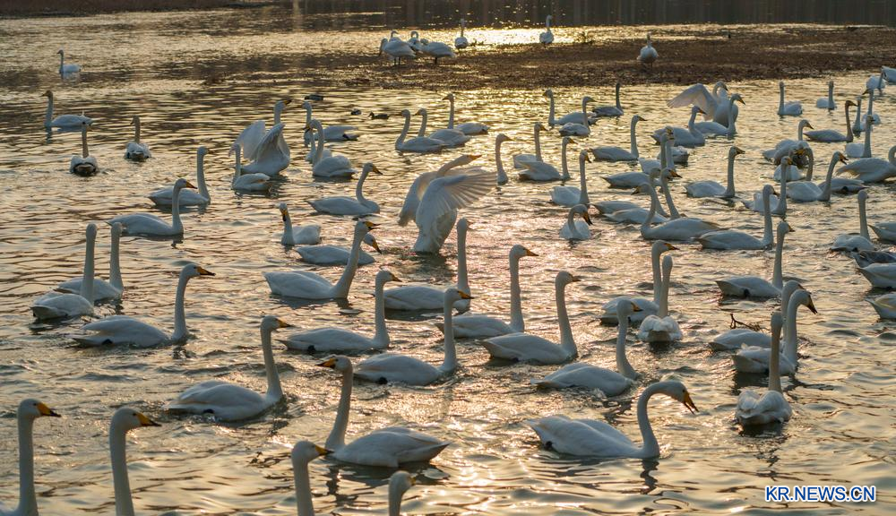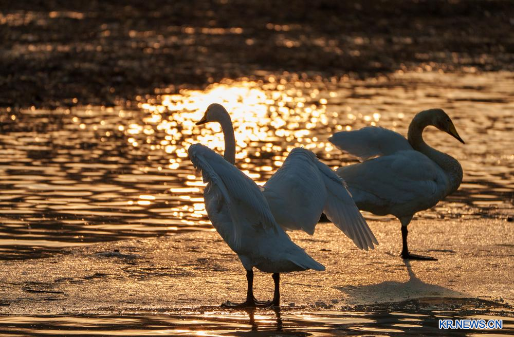 [신화망 중국 차오양 2월27일] 랴오닝(遼寧)성 차오양(朝陽)시 다링허(大凌河) 일대에서 서식하며 겨울을 나고 있는 백조를 보기 위해 많은 사람의 발길이 이어지고 있다.