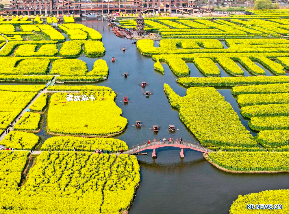 [신화망 중국 싱화 3월30일] 장쑤(江蘇)성 싱화시(興化)시 첸둬(千垛)관광지의 유채꽃이 만개해 많은 시민과 여행객의 발길이 이어지고 있다.