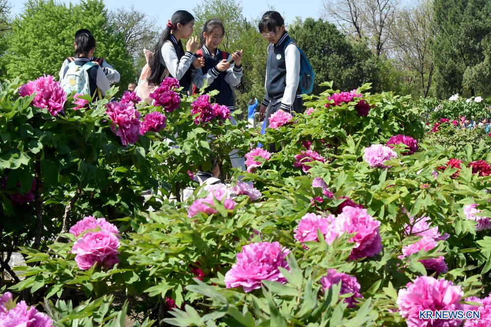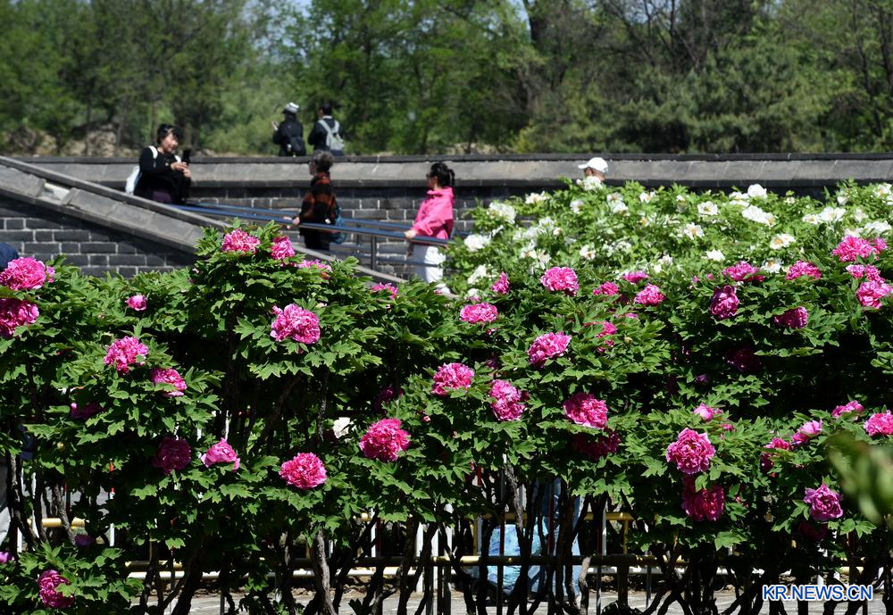 [신화망 베이징 4월 21일] 베이징 원명원(圓明園)에 희귀 품종을 포함한 100여 종의 모란이 만개해 많은 시민의 발길을 이끌었다.