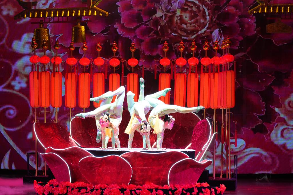 26일 저녁 중국문학예술연합회, 중국서커스아티스트협회가 공동 주최하는 "신시대·신여정-전국 우수 서커스 프로그램 베이징 공연"의 마지막 작품으로 쓰촨(四川)성 쑤이닝(遂寧)시 서커스단의 "출채중국(出彩中國)"이 베이징 훙극장에서 상연됐다. 2023.10.27