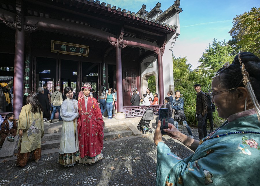 [신화망 허페이 12월21일]독일 프랑크푸르트에선 "춘화위안(春華園)"이라는 이름의 휘파(徽派) 정원이 핫플레이스로 떠올랐다. 정원 내 여러 건축물은 물을 둘러싼 형태로 지어졌으며 그 사이 세워진 돌패방은 후이저우(徽州)의 정취를 한껏 드러낸다.