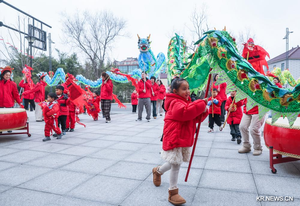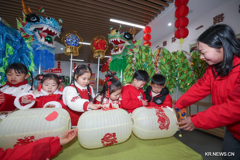 [신화망 후저우 2월26일]저장(浙江)성 후저우(湖州)시 창싱(長興)현의 한 유치원에서 25일 "개학맞이 무형문화재 체험" 행사가 열렸다. 유치원생들은 교사의 지도를 받으며 용의 해와 관련한 중국 전통문화에 대해 배우고 용춤, 전지(剪紙·종이 공예), 등롱을 만들며 무형문화재의 매력을 직접 체험했다.