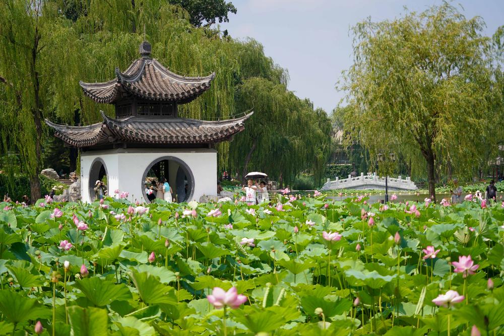 여름을 맞아 베이징 타오란팅공원에 연꽃이 잇따라 꽃망울을 활짝 터뜨리자 여름 정취를 만끽하려는 시민들의 발걸음이 이어지고 있다. 2024.7.3