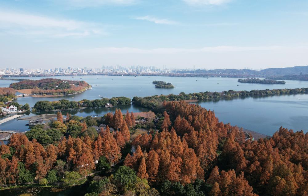 22일 드론으로 내려다본 저장(浙江)성 항저우(杭州)시 시후(西湖). 2024.12.22