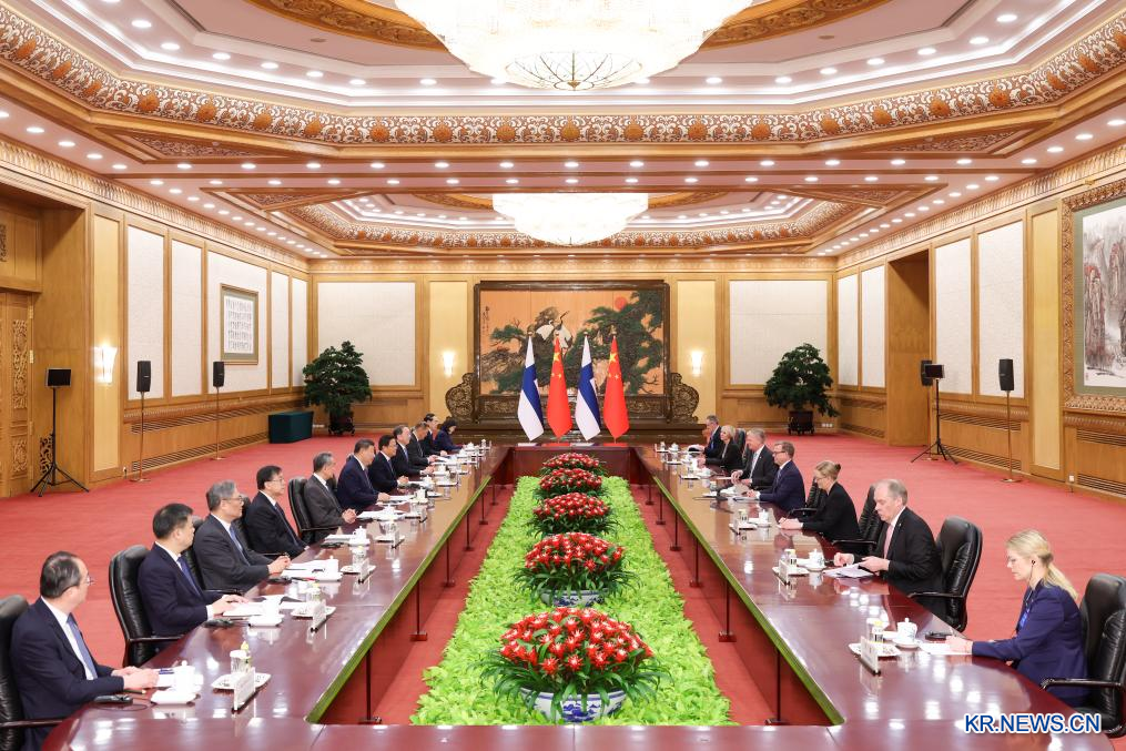 27일 오전 시진핑(習近平) 중국 국가주석이 베이징 인민대회당에서 중국을 공식 방문한 페테리 오르포 핀란드 총리와 회견했다. [촬영/신화통신 기자 류빈(劉彬)]
