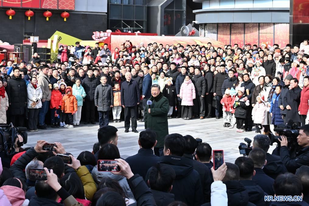 10일 오전 둥청구 룽푸쓰 거리를 방문한 시 주석은 전국 각 민족 인민과 홍콩·마카오·타이완 동포, 해외 교포들에게 새해 인사를 전했다.2026.2.10