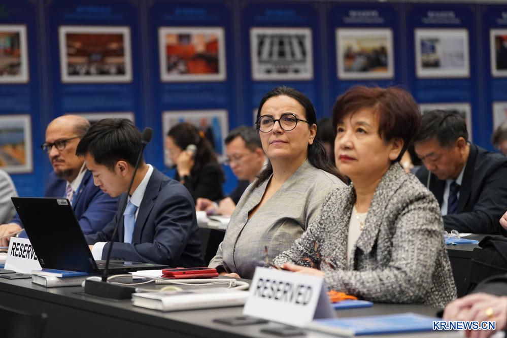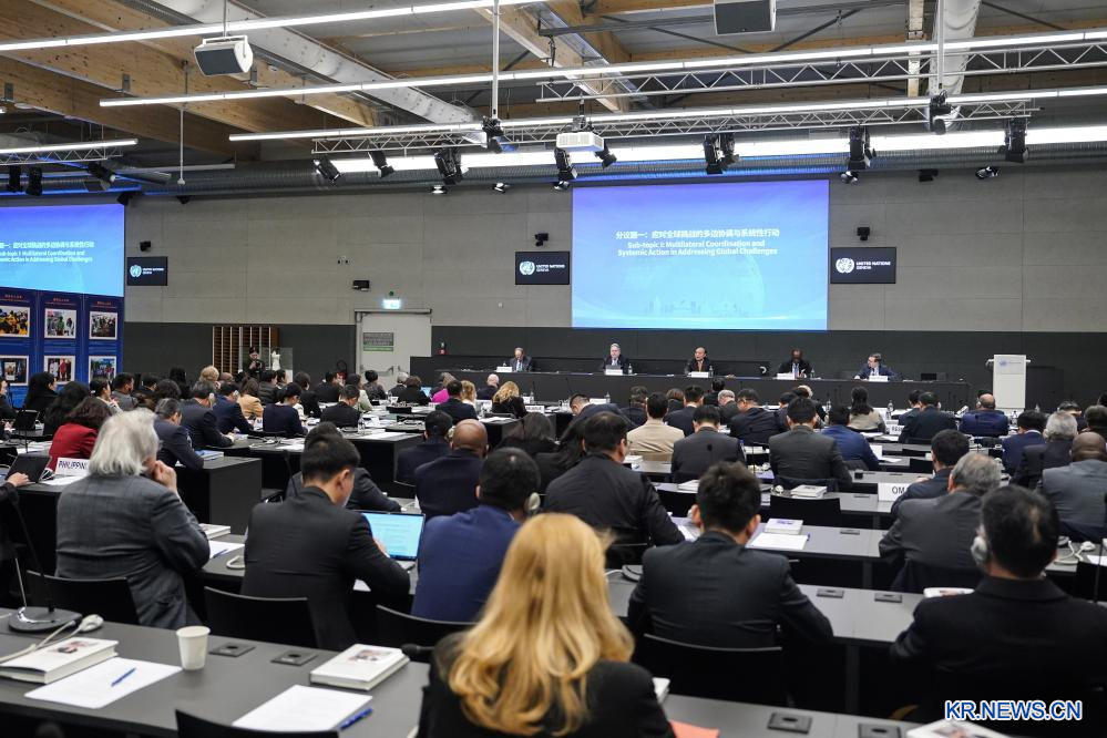 24일(현지시간) 스위스 제네바 팔레데나시옹에서 글로벌 거버넌스 세미나 및 "신시대 국정운영 기록’ 제1권 영문판 발표회가 열렸다. 유엔 기구와 국제 기구의 대표, 여러 나라의 유엔 주재 대사 및 싱크탱크, 기업계 인사 등 약 200명이 발표회에 참석했다.[촬영/신화사 기자 펑쯔양(彭子洋)]
