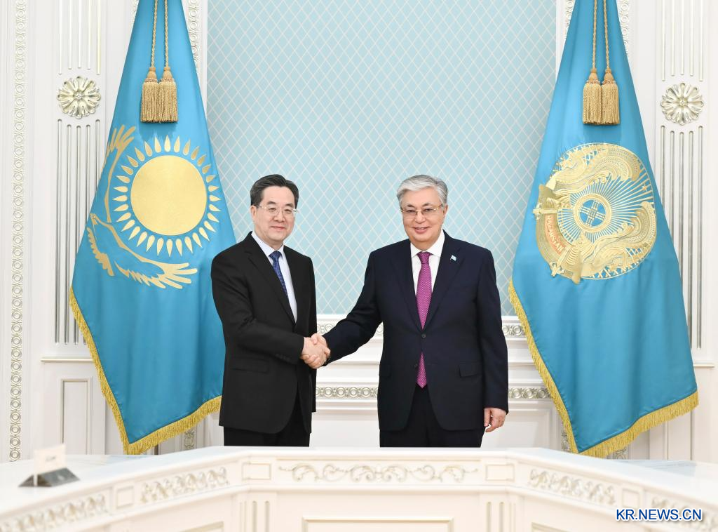 [신화망 아스타나 11월28일] 딩쉐샹(丁薛祥) 중국 공산당 중앙정치국 상무위원, 국무원 부총리가 27일 아스타나에서 카심-조마르트 토카예프 카자흐스탄 대통령을 회견했다. [촬영/신화사 기자 옌옌(燕雁)]