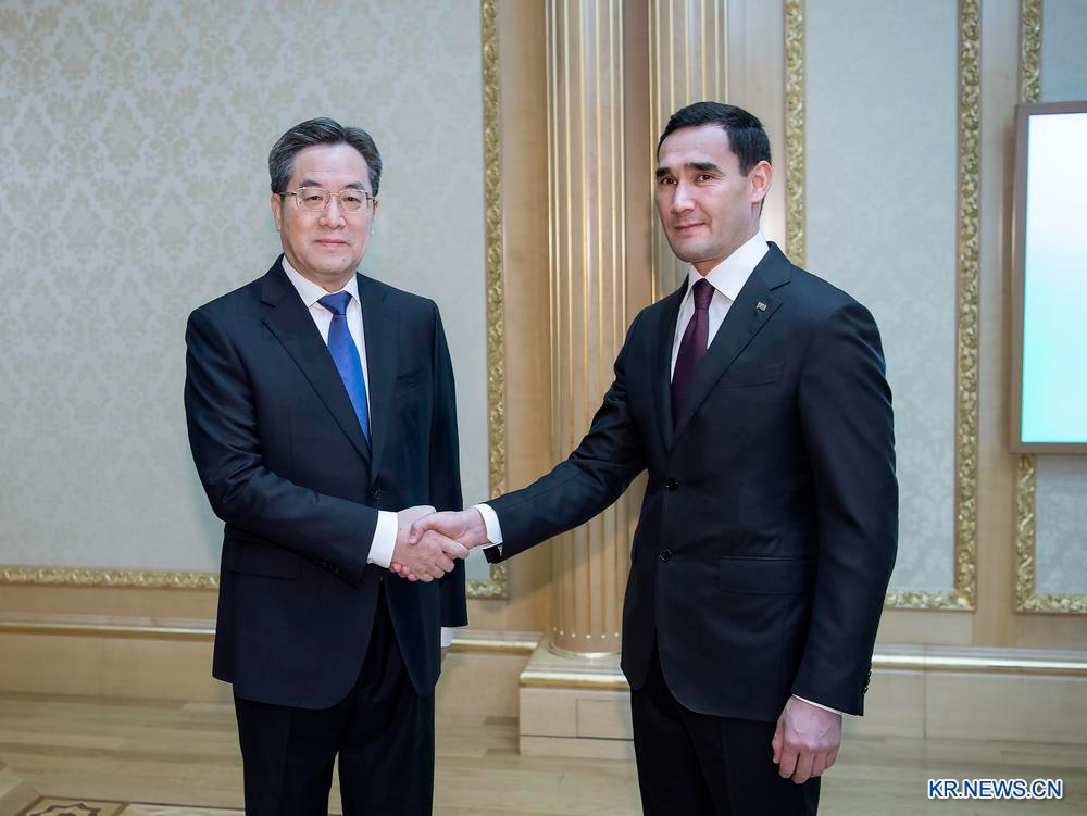 29일 세르다르 베르디무함메도프 투르크메니스탄 대통령을 만난 딩 상무위원. 2023.11.29