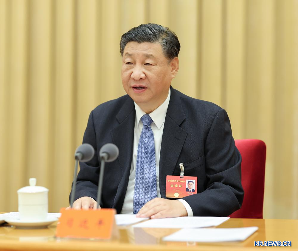 시진핑(習近平) 중국공산당 중앙위원회 총서기, 국가주석, 중앙군사위원회 주석이 중앙경제업무회의에 참석해 발언하고 있다.