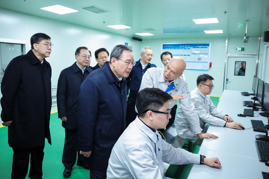 [신화망 시안 1월31일] 리창(李强) 중국 공산당 중앙정치국 상무위원 겸 국무원 총리가 29일부터 30일까지 산시(陝西)성을 시찰했다. 29일 셴양(咸陽)시 소재 한 디스플레이 부품업체를 찾은 리창 총리가 기판 유리 신제품 개발과 생산 공정 혁신 현황을 살펴보고 있다.[촬영/신화사 기자 류빈(劉彬)]