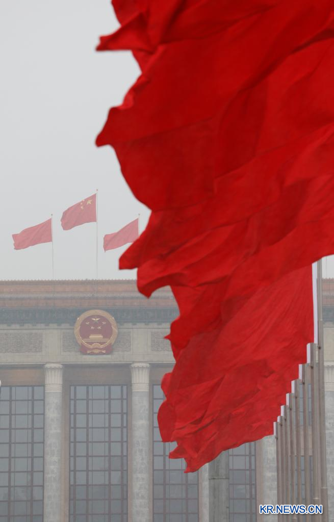 [신화망 베이징 3월5일] 제14기 전국인민대표대회(전인대) 제2차 회의가 5일 베이징 인민대회당에서 개막한다.[촬영/신화사 기자 리허(李賀)]