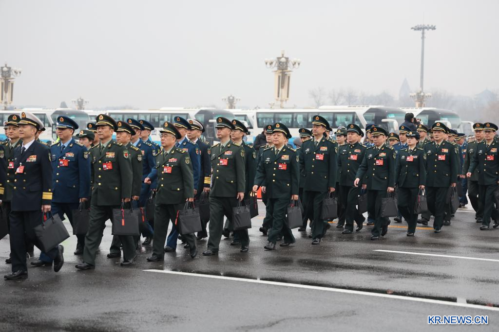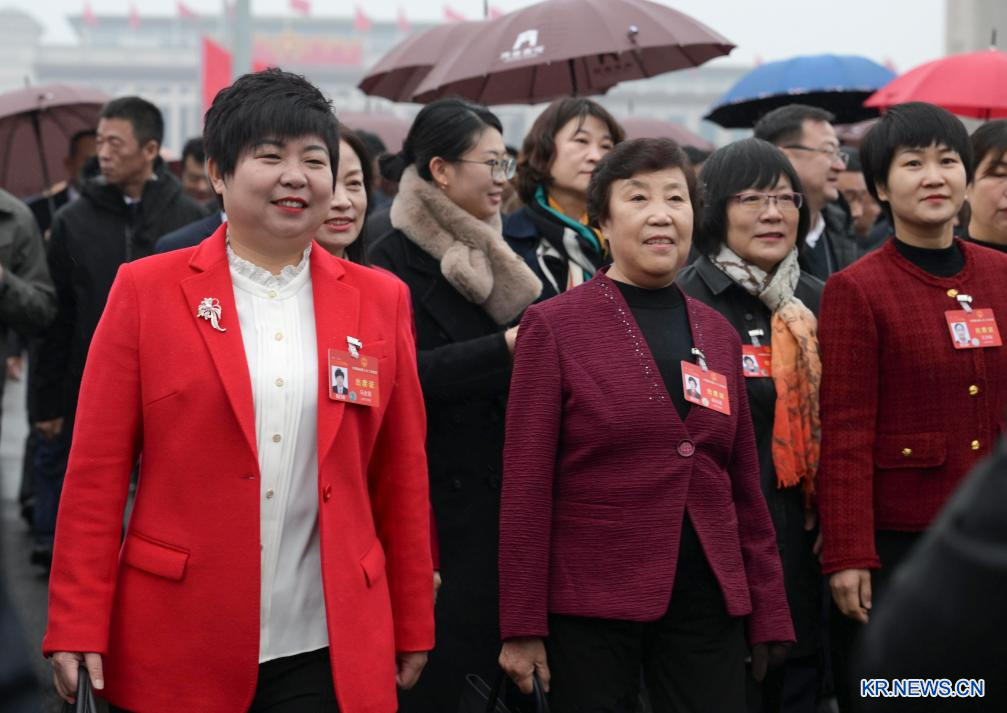 회의장으로 입장 중인 전인대 대표들.