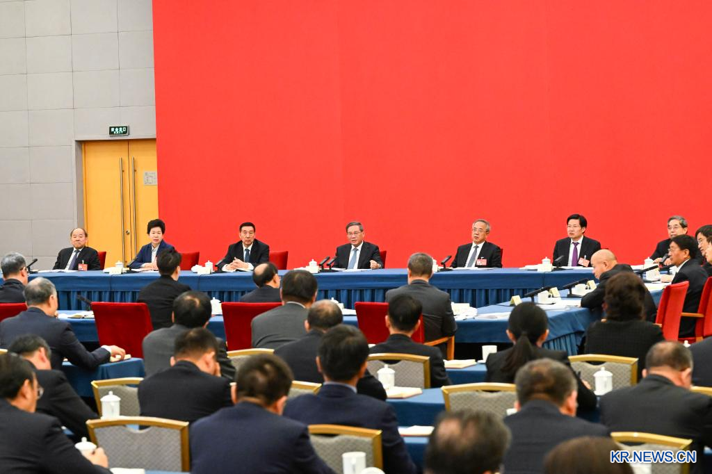 [신화망 베이징 3월7일] 리창(李强) 중국 공산당 중앙정치국 상무위원 겸 국무원 총리가 6일 전국인민정치협상회의(정협) 제14기 제2차 회의 경제∙농업계 위원 합동소조회의에 참가했다.[촬영/신화사 기자 라오아이민(饒愛民)]