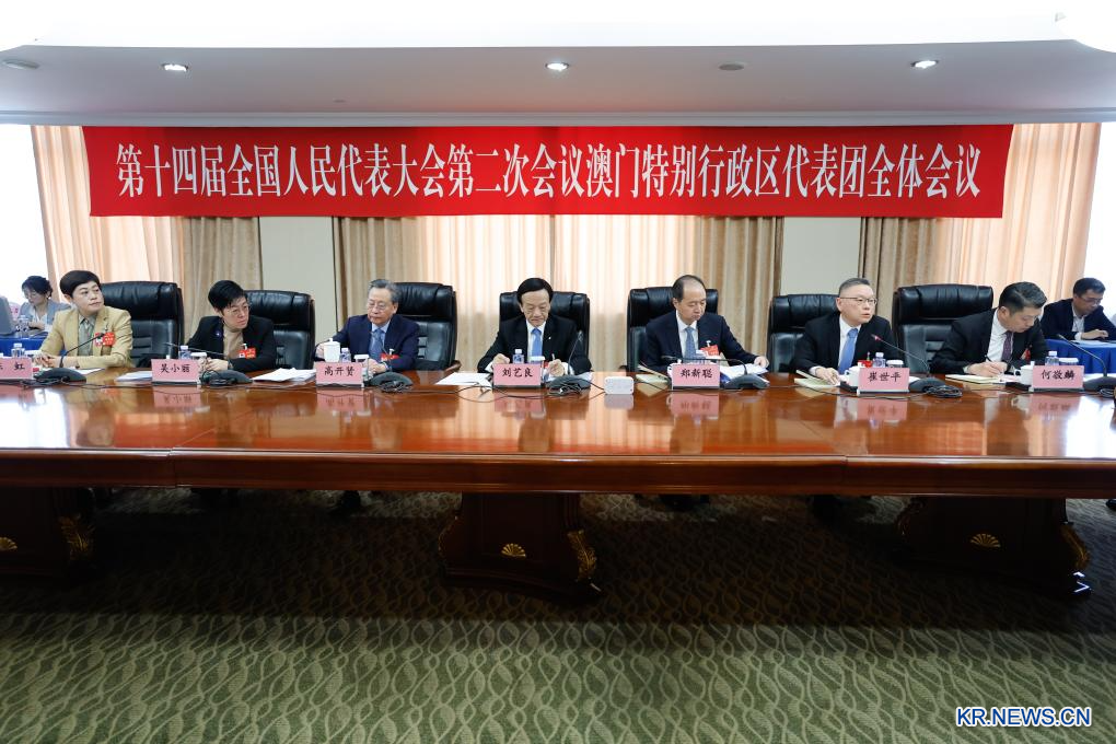 [신화망 베이징 3월8일] 제14기 전국인민대표대회(전인대) 제2차 회의 마카오 대표단이 7일 대표단 소조회의를 열었다. [촬영/신화사 기자 왕징창(王婧嬙)]