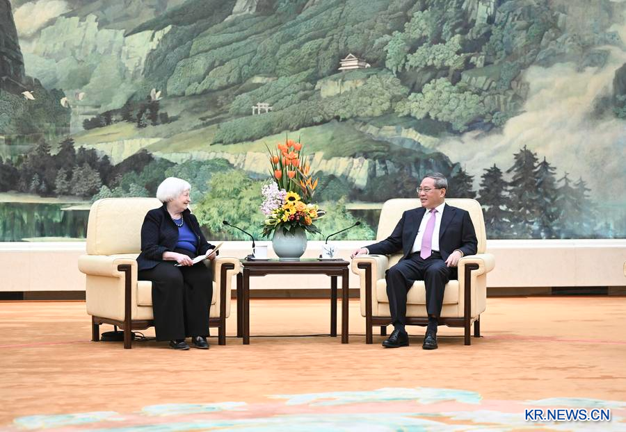 [신화망 베이징 4월8일] 리창(李强) 중국 국무원 총리가 7일 오전(현지시간) 베이징 인민대회당에서 재닛 옐런 미국 재무장관과 회견했다.