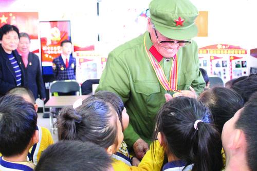 2월 22일, 연길시 건공가두 연성사회구역 ‘새시대 홍색이야기역’에서 ‘소년아동에게 홍색 유전자를 심어주자’ 주제 당일 선전강연 활동이 펼쳐졌다. 연길시위재유치원의 50여명 유아와 교원이 이날 활동에 참가했다. 사진은 아이들과 교류하고 있는 로병의 모습이다. 김선 기자