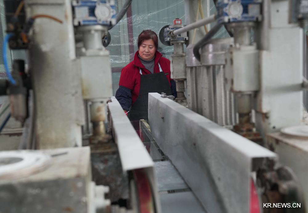 푸닝구의 한 특수 유리 기업 직원들이 16일 작업에 매진하고 있다. 2024.3.17