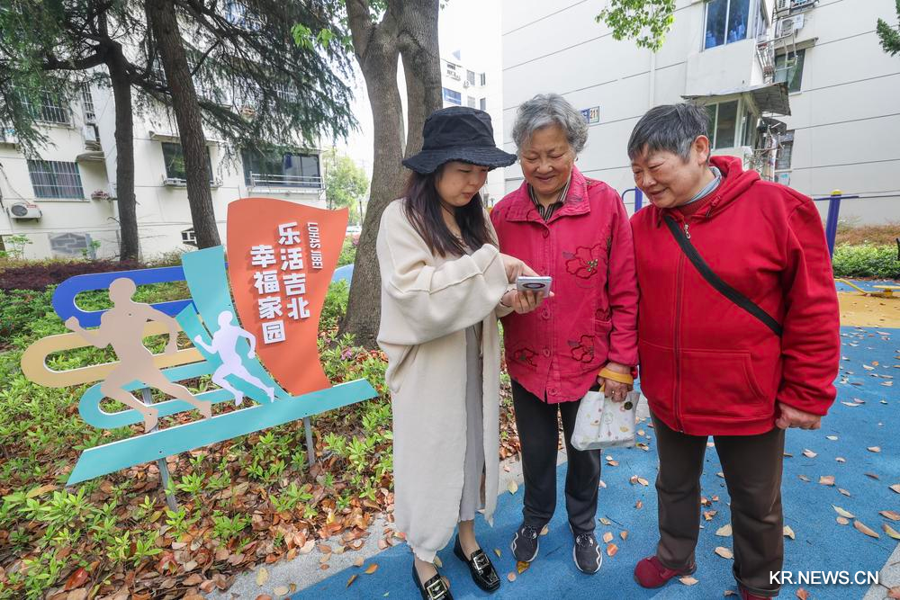페이잉가도 내 지역사회 직원이 10일 노인에게 휴대전화 디지털 플랫폼의 사용 방법을 알려주고 있다. 2024.4.10