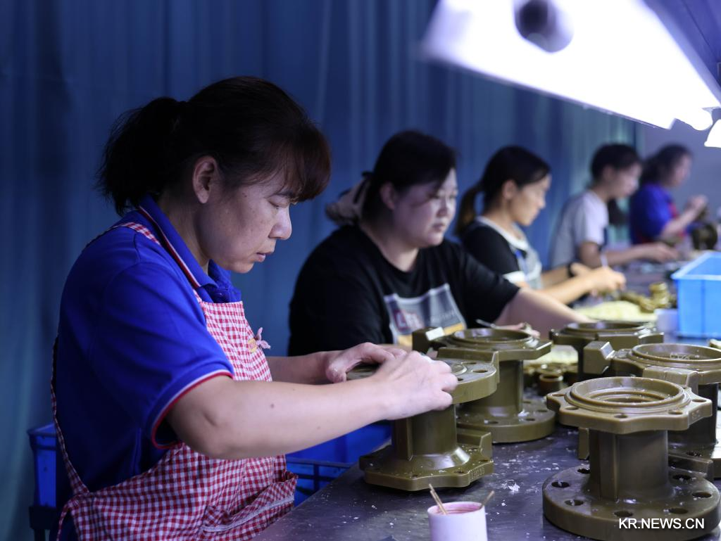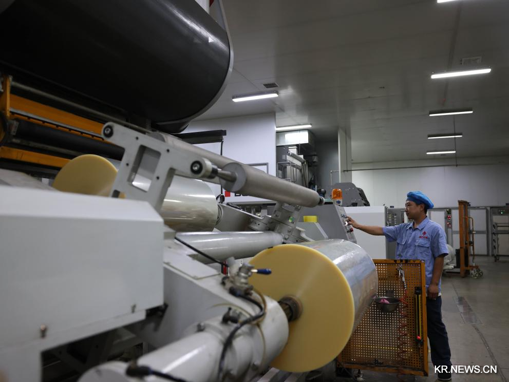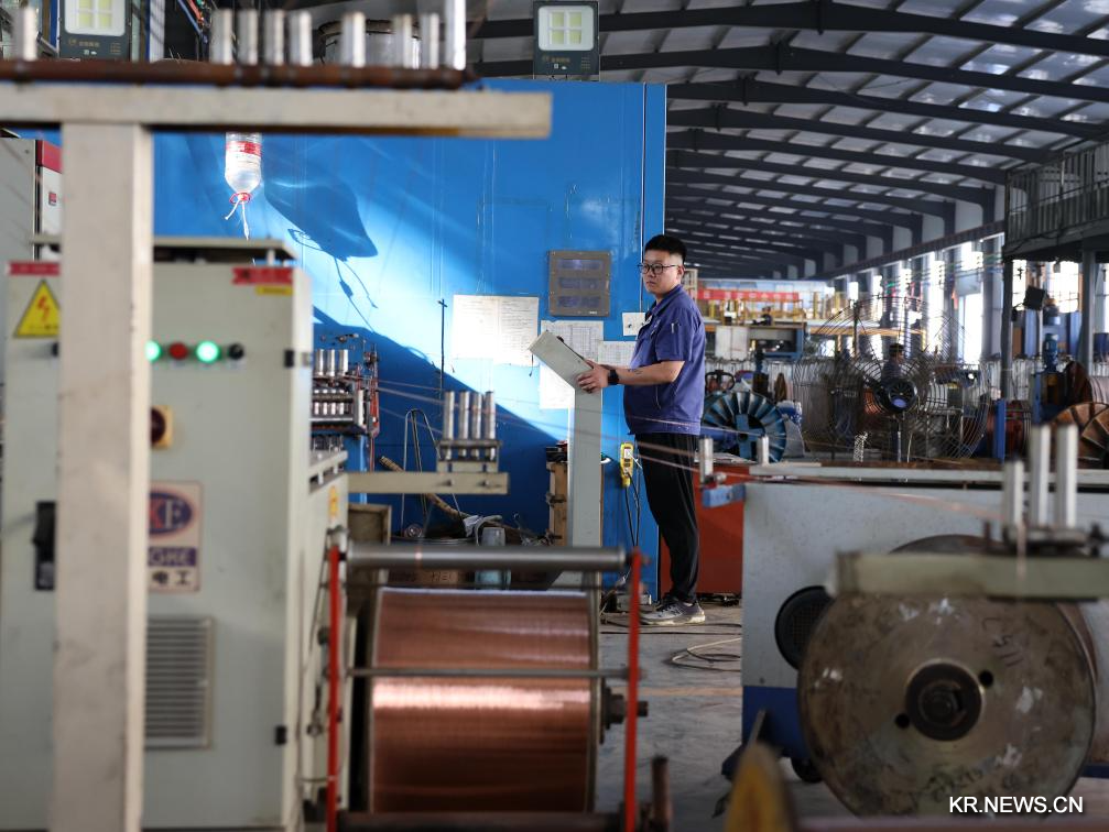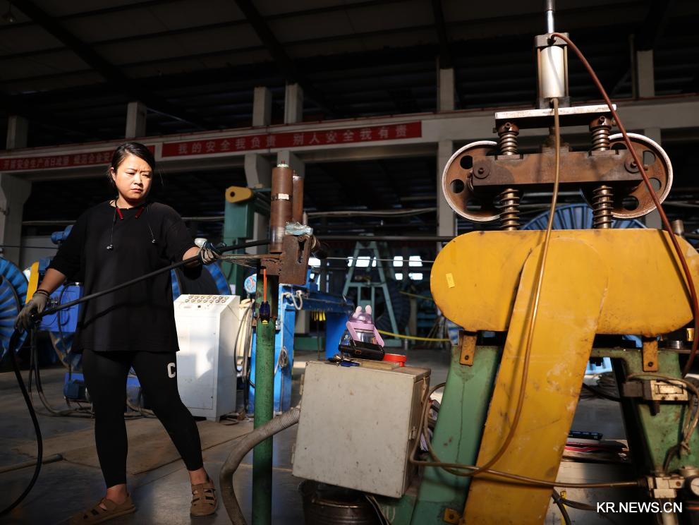24일 중국 허베이성 싱타이(邢台)시 닝진(宁晋)현 소재 한 케이블 업체의 생산 현장에서 근로자가 작업하고 있다.