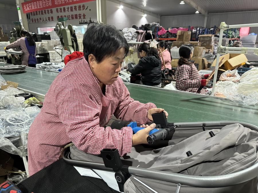 한편 허베이신스자(新仕嘉)완구회사 작업장. 핑샹현 왕훙캉(王洪康)촌에 거주하는 류화(劉花∙49)가 유모차에 리벳을 고정하느라 바쁘게 일하고 있다. 그는 "이곳에서 일한 지 5년 됐다"며 "한 달 월급이 4천 위안(79만원)이 넘고 마을 주민 4~5명이 함께 일하고 있다"고 말했다. 류 씨와 같은 현지 직원은 회사 전체의 90%를 차지한다.