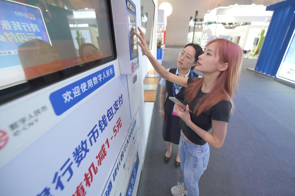 [신화망 푸저우 9월12일] 관람객들이 11일 "2023년 국가 네트워크 보안 홍보 위크" 행사 현장에서 디지털 위안화를 체험하고 있다.