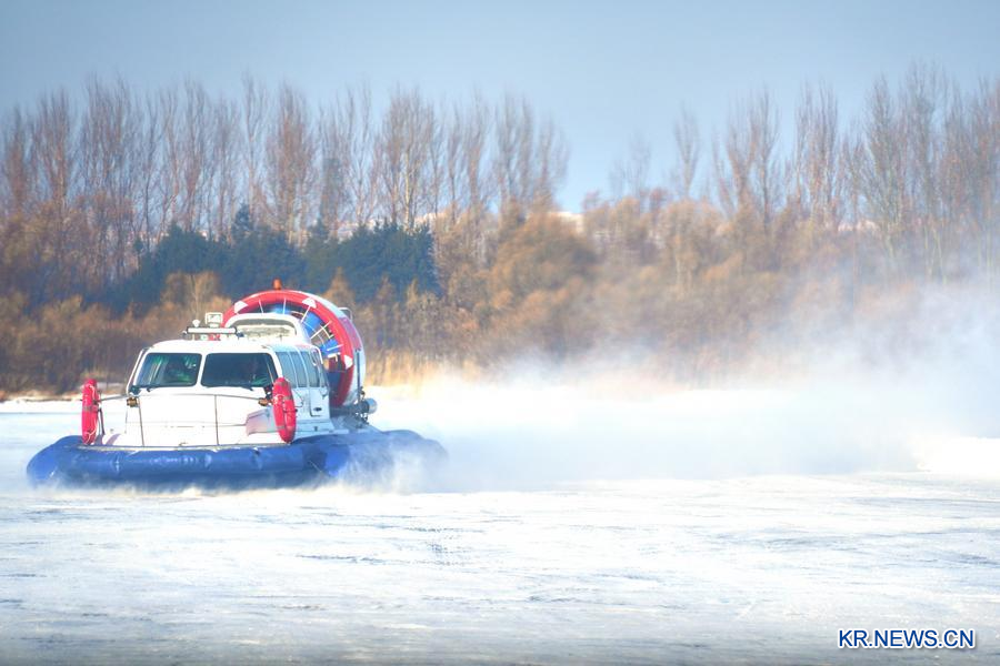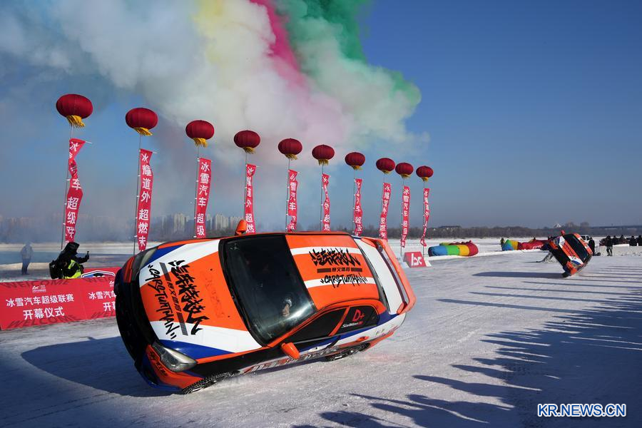 [신화망 중국 하얼빈 1월28일] 헤이룽장(黑龍江)성 하얼빈(哈爾濱)시 다오와이(道外)구 우퉁(戊通) 항운의 얼어붙은 강 위에서 요란한 엔진음이 한겨울의 정적을 가르며 "빙차오(冰超)"·2026 빙설 자동차 슈퍼리그"가 25일 성대한 막을 올렸다.