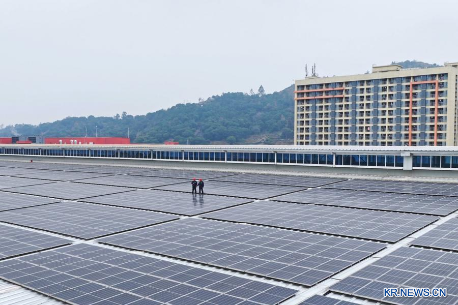 [신화망 베이징 2월6일]푸젠(福建)성 닝더(寧德)시 푸딩(福鼎) 산업단지. 공장 건물 옥상에 설치된 대규모 태양광 패널을 통해 흡수된 햇빛이 계속해서 녹색 전력으로 전환된다. 국가급 탄소제로 산업단지 시범 지역 중 하나인 이곳은 안정적이고 스마트한 전력 지원 체계를 바탕으로 녹색 전환의 초기 성과를 거두고 있다.