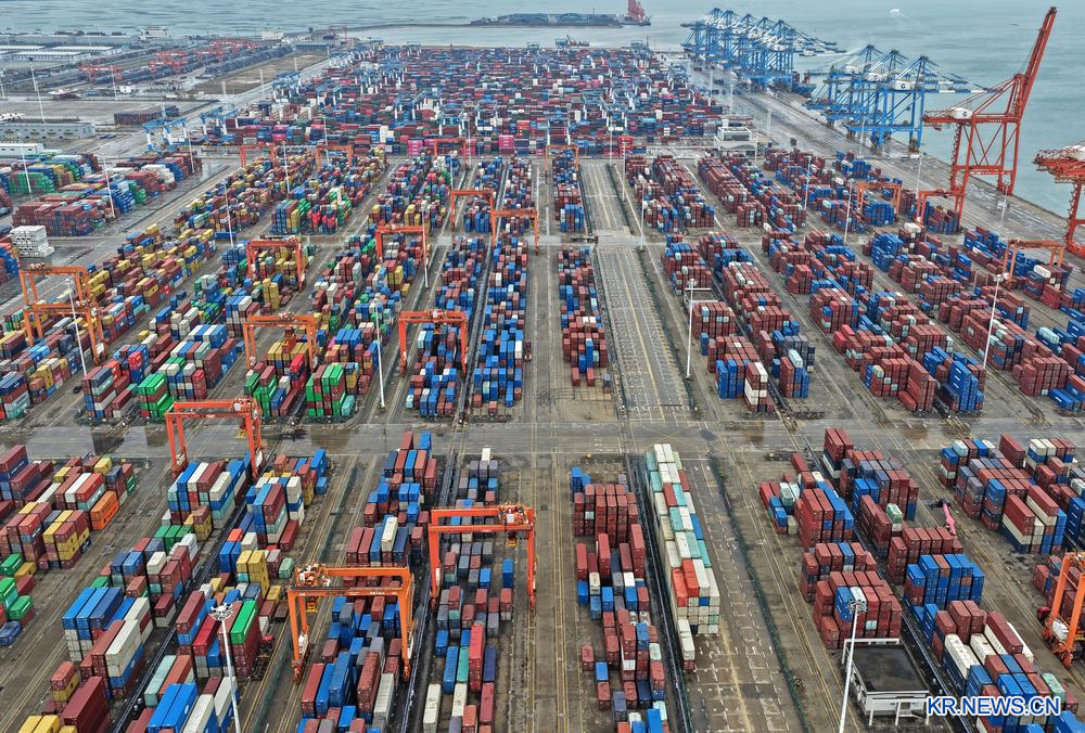 4일 컨테이너가 가득한 친저우 항구 부두를 드론으로 내려다봤다. 2026.3.4pagebreak
