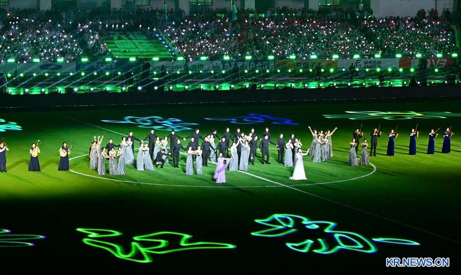 궂은 날씨에도 불구하고 개막식 현장은 관중 4만여 명이 내뿜는 열기로 뜨겁게 달아올랐다. 개막식 공연에서는 현지 테크 기업이 공급한 약 300대의 로봇들이 멋진 군무를 선보였다.