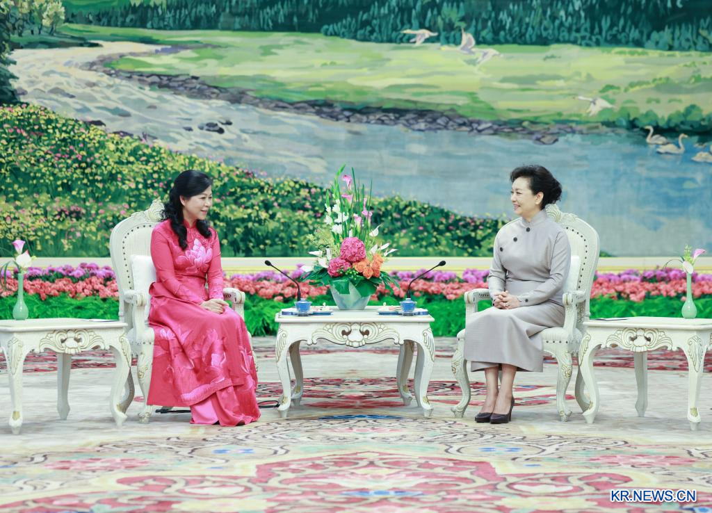 펑리위안 여사, 베트남 공산당 서기장 겸 국가주석 부인과 차담