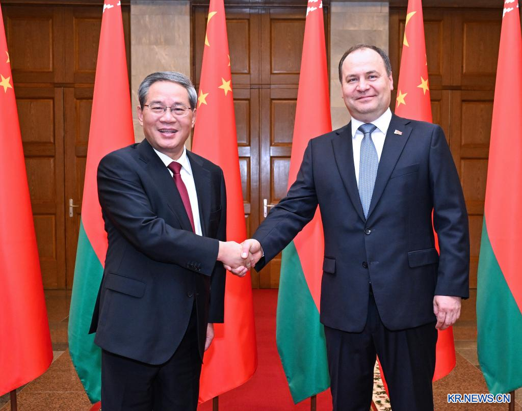 [신화망 민스크 8월23일]리창(李强) 중국 국무원 총리가 22일 오후(현지시간) 벨라루스 민스크에서 로만 골롭첸코 벨라루스 총리와 회담했다.