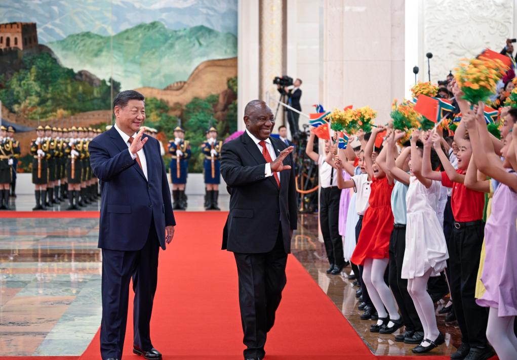 시진핑(習近平) 주석이 2일 오후 베이징 인민대회당에서 FOCAC 정상회의 참석차 중국을 방문한 시릴 라마포사 남아공 대통령과 회견했다.[촬영/신화사 기자 자이젠란(翟健嵐)]pagebreak