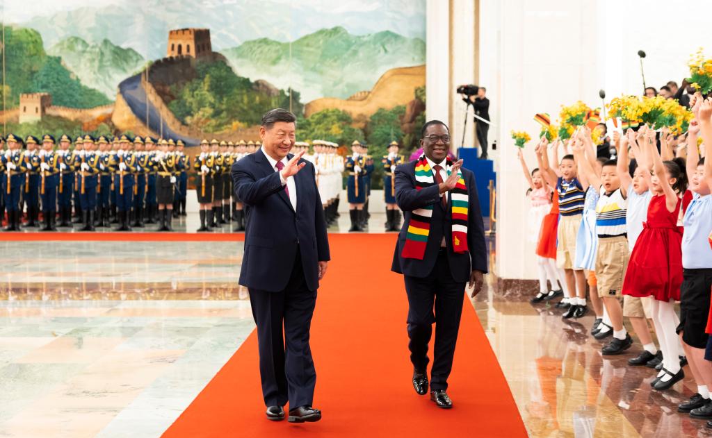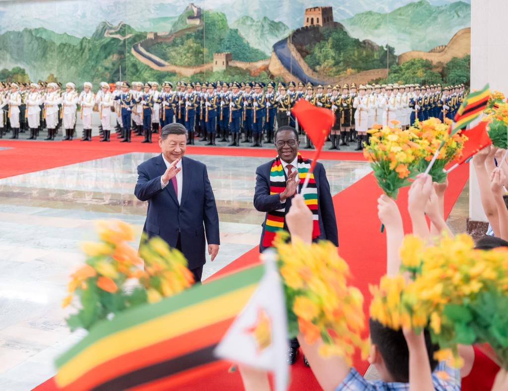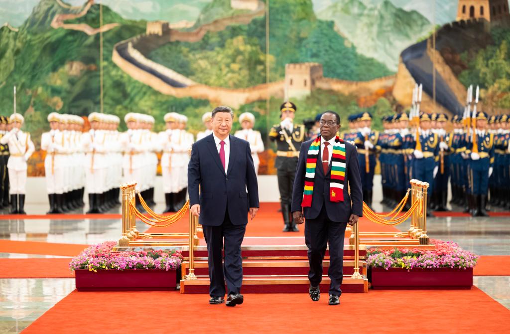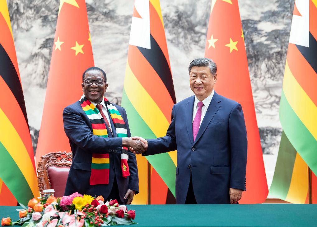 시진핑(習近平) 주석이 3일 오후 베이징 인민대회당에서 FOCAC 정상회의 참석차 중국을 방문한 에머슨 음낭가과 짐바브웨 대통령과 회견했다.[촬영/신화사 기자 리타오(李濤)]
