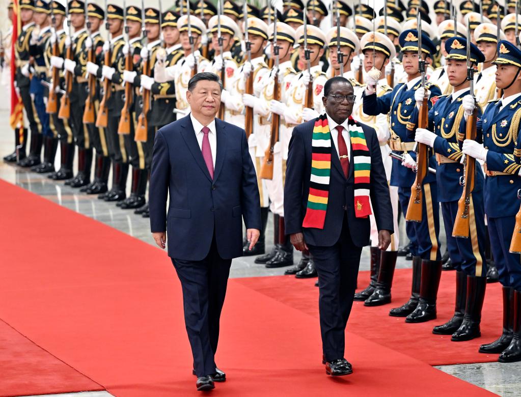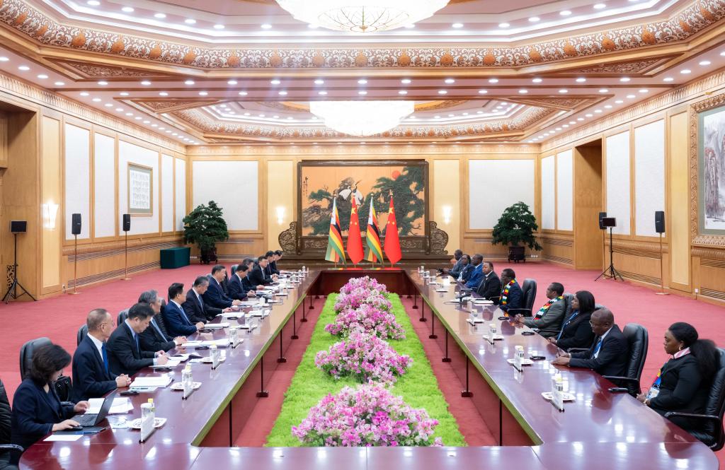 시진핑(習近平) 주석이 3일 오후 베이징 인민대회당에서 FOCAC 정상회의 참석차 중국을 방문한 에머슨 음낭가과 짐바브웨 대통령과 회견했다.[촬영/신화사 기자 인보구(殷博古)]pagebreak