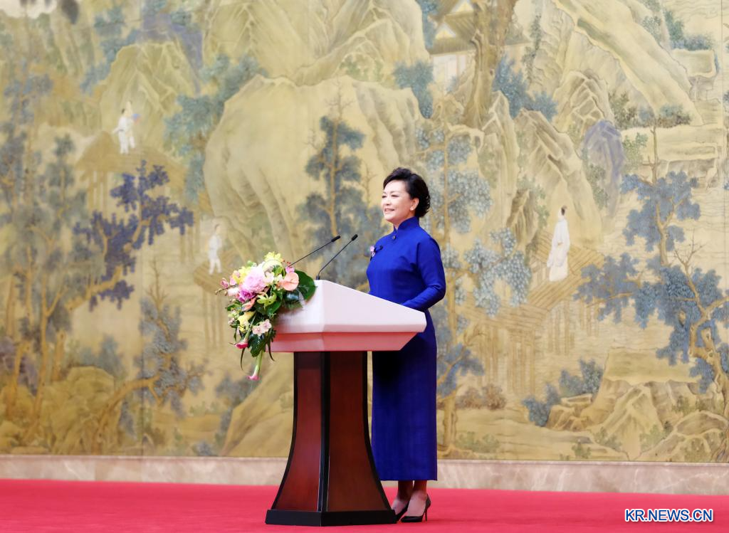 중국∙아프리카 여성 교육을 주제로 한 회의가 5일 오전 베이징 댜오위타이 국빈관에서 열렸다. 시진핑(習近平) 중국 국가주석의 부인이자 유네스코 여성·여아교육 촉진 특사인 펑리위안(彭麗媛) 여사가 회의에 참석해 축사를 했다. [촬영/신화사 기자 딩린(丁林)]