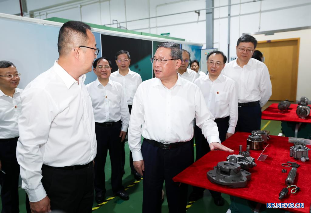 리창(李强) 중국 공산당 중앙정치국 상무위원 겸 국무원 총리가 26일부터 27일까지 상하이시 자유무역시험구 건설을 시찰했다. 27일 볼보건축설비(중국)를 방문한 리창 총리가 기업의 재제조 추진 등 상황을 소상히 파악하고 있다.[촬영/신화사 기자 황징원(黄敬文)]