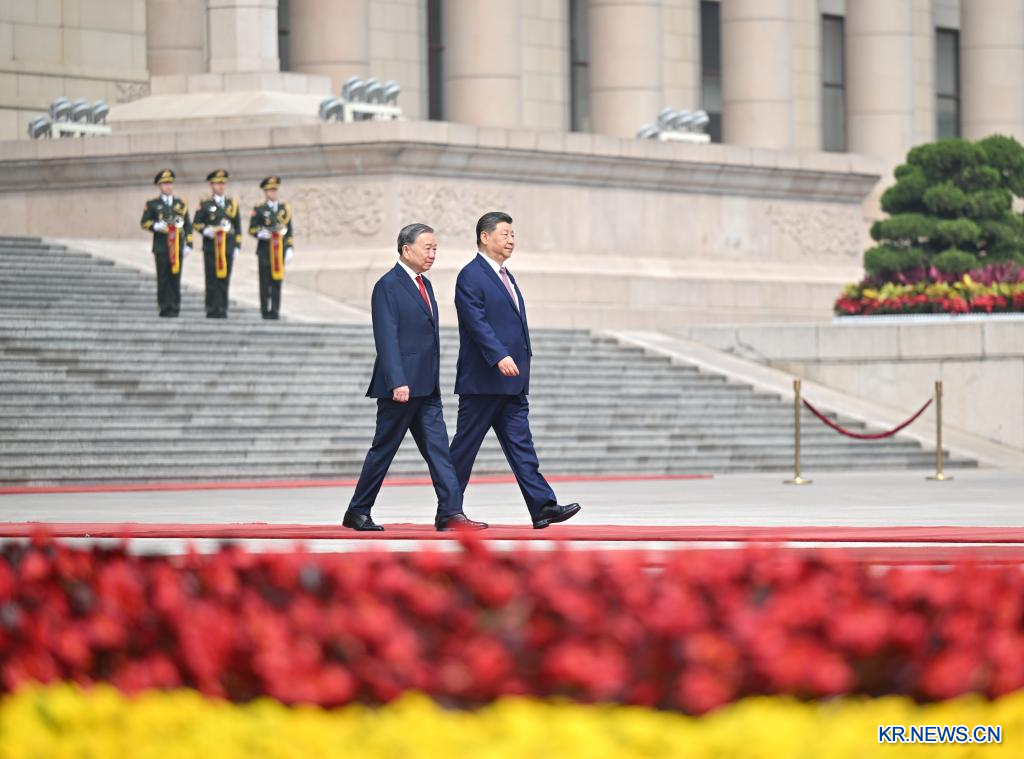 시 주석이 15일 오전 베이징 인민대회당에서 중국을 국빈 방문한 또 럼 서기장과 회담했다. 회담에 앞서 시 주석이 인민대회당 동문 밖 광장에서 또 럼 서기장을 위한 환영식을 열었다. [촬영/신화통신 기자 리샹(李響)]pagebreak