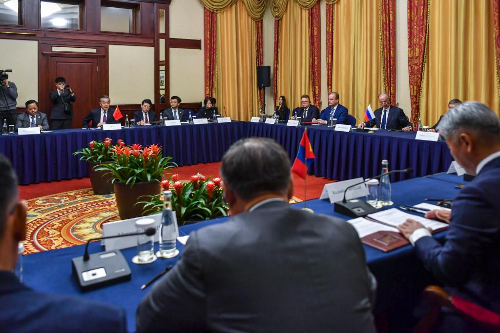 그는 3자 협력을 강화하는 것은 세 나라의 공동 이익에 부합하고 지역발전에 대한 공감대를 모으는 데도 도움이 된다고 강조했다. 이어 중국 측은 러시아·몽골과 함께 협력을 심화하고 지역의 번영과 안정을 촉진하며 지역 발전 성과를 공유할 수 있는 효과적인 방법을 모색해 나갈 것이라고 덧붙였다.