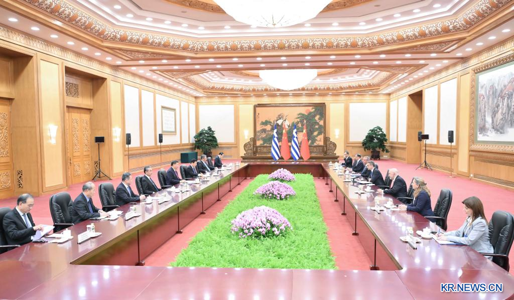 시진핑 중국 국가주석이 3일 오후 베이징 인민대회당에서 중국을 공식 방문한 키리아코스 미초타키스 그리스 총리를 회견했다.[촬영/신화사 기자 리타오(李涛)]