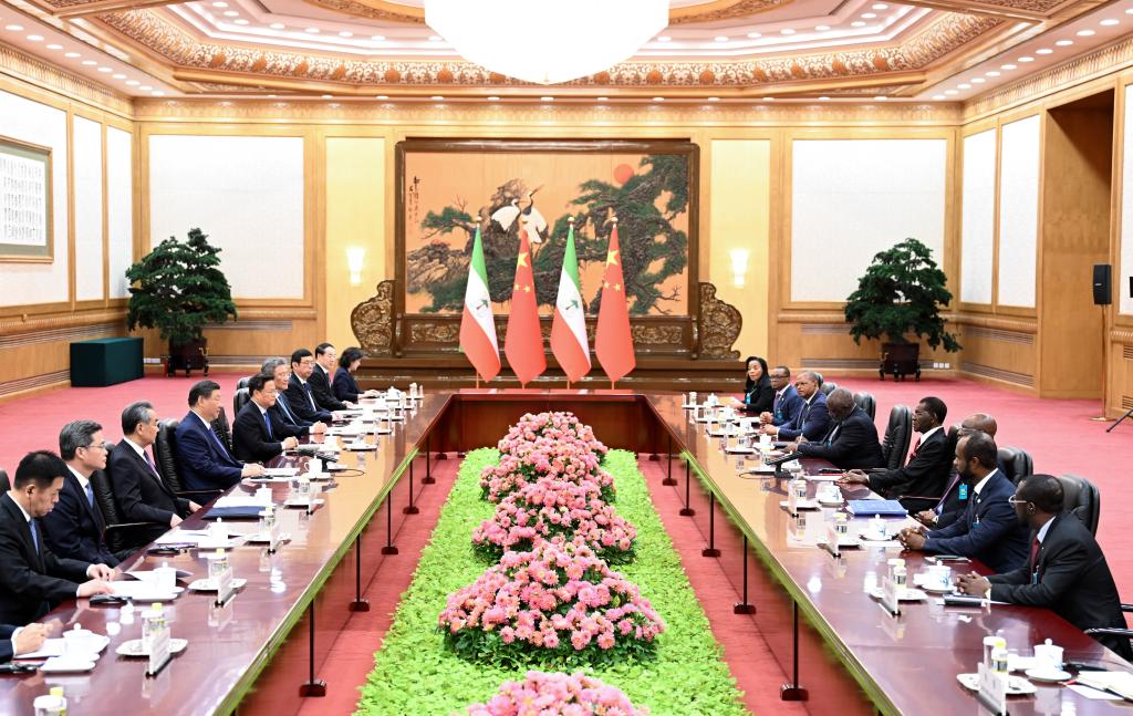 시진핑(習近平) 중국 국가주석이 28일 오후 베이징 인민대회당에서 중국을 국빈 방문한 테오도로 오비앙 응게마 음바소고 적도기니 대통령과 회담했다. [촬영/신화사 기자 장링(張領)]