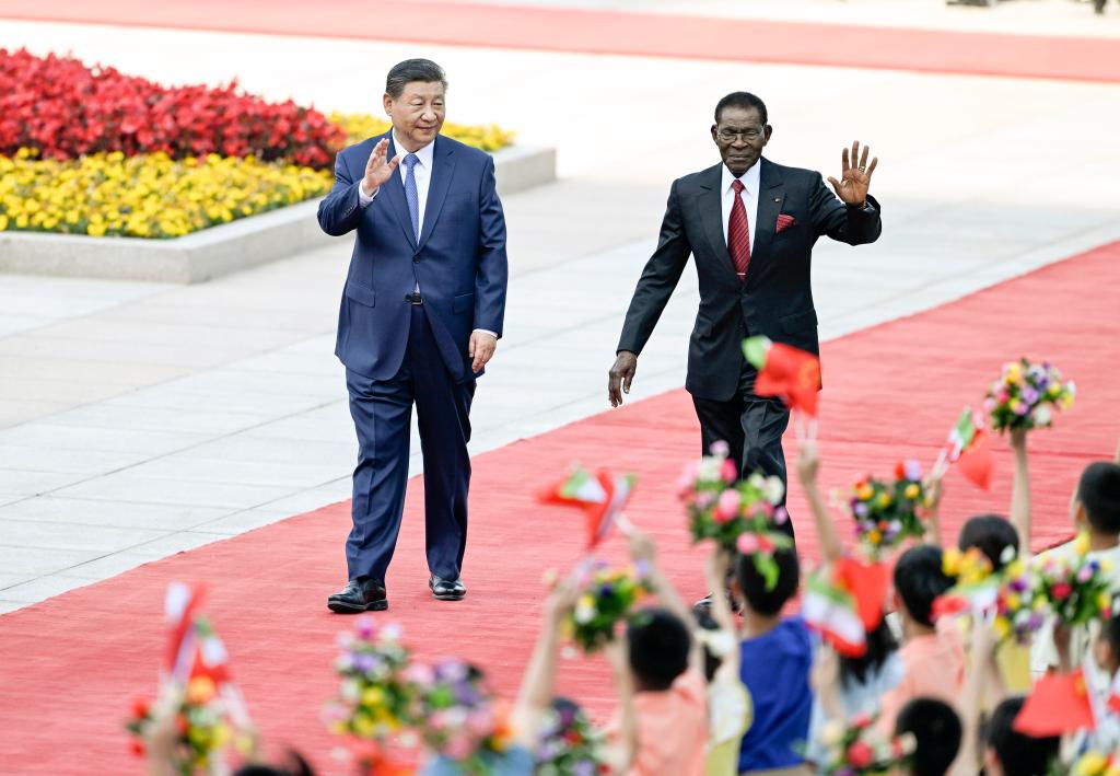 시진핑(習近平) 중국 국가주석이 28일 오후 베이징 인민대회당에서 중국을 국빈 방문한 테오도로 오비앙 응게마 음바소고 적도기니 대통령과 회담했다. 시진핑 주석은 회담에 앞서 인민대회당 동문 밖 광장에서 오비앙 대통령을 위한 환영식을 열었다. [촬영/신화사 기자 장링(張領)]